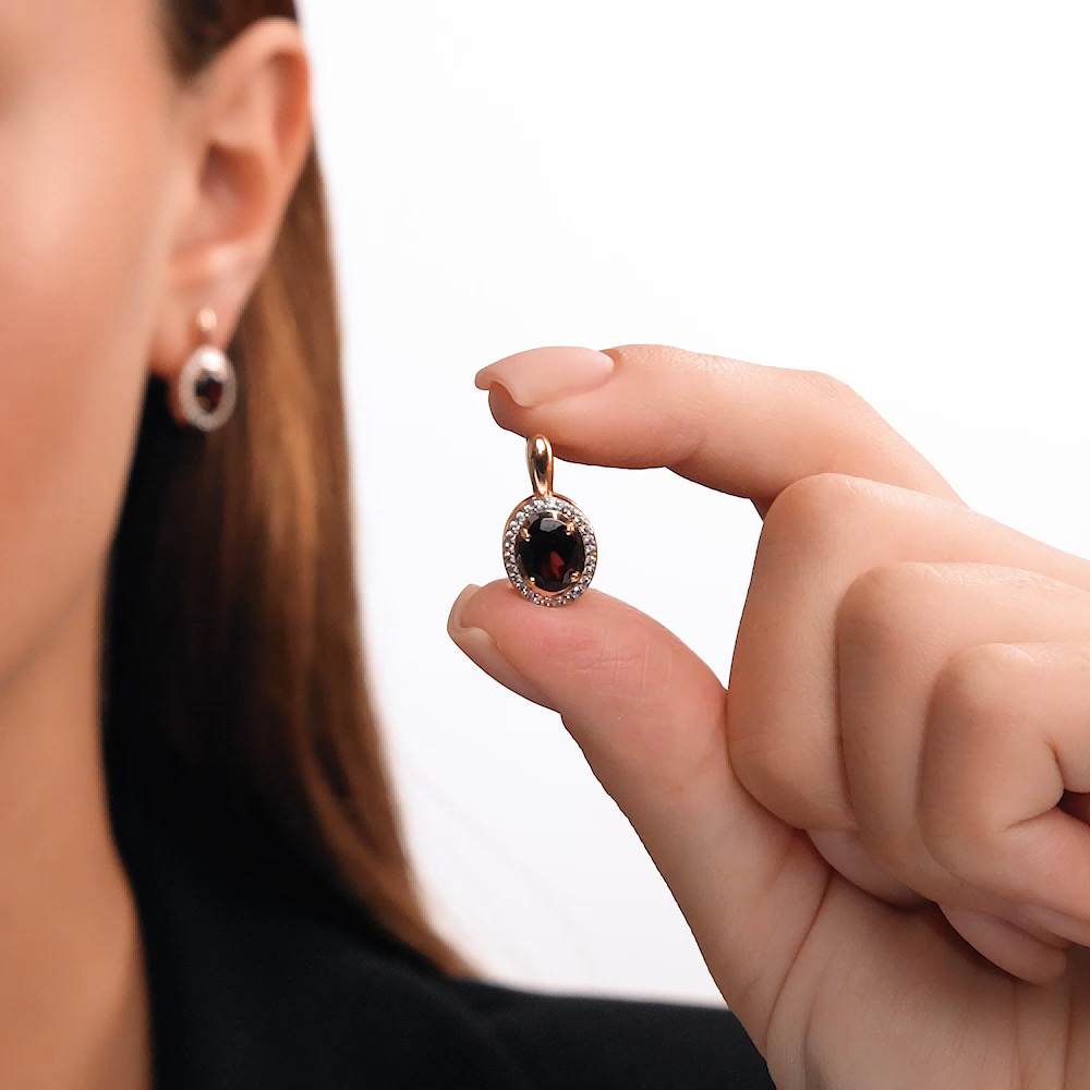 В редких случаях характеристики украшения или упаковка могут иметь отличия от представленных на фото или в описании.Серьги с 2 гранатами природными, 2.86 карат;