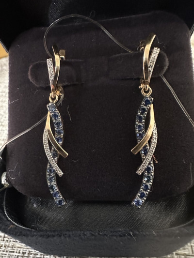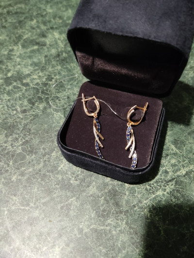 Золотые серьги с бриллиантами природными и сапфирами природными