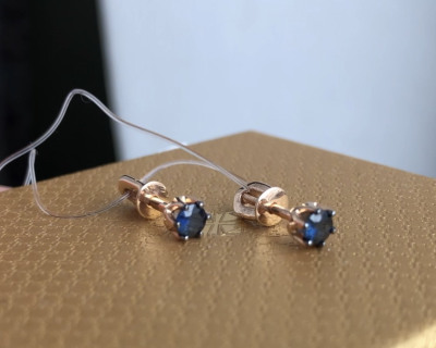 Серьги с 2 сапфирами природными, 0.37 карат, цвет 2, чистота 2, тип огранки В;