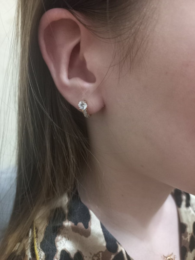 В редких случаях характеристики украшения или упаковка могут иметь отличия от представленных на фото или в описании.Серьги, вставка: фианитом бесцветным;