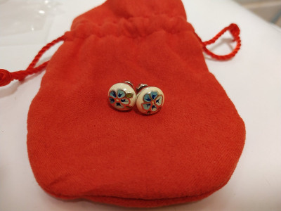 Хорошие сережечки. Красивый рисунок. Из минусов - темнеет белая эмаль