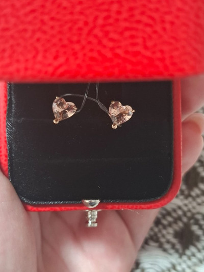 Красивые , милые, оригинальные , золотые серьги с сердечками Камни не маленькие