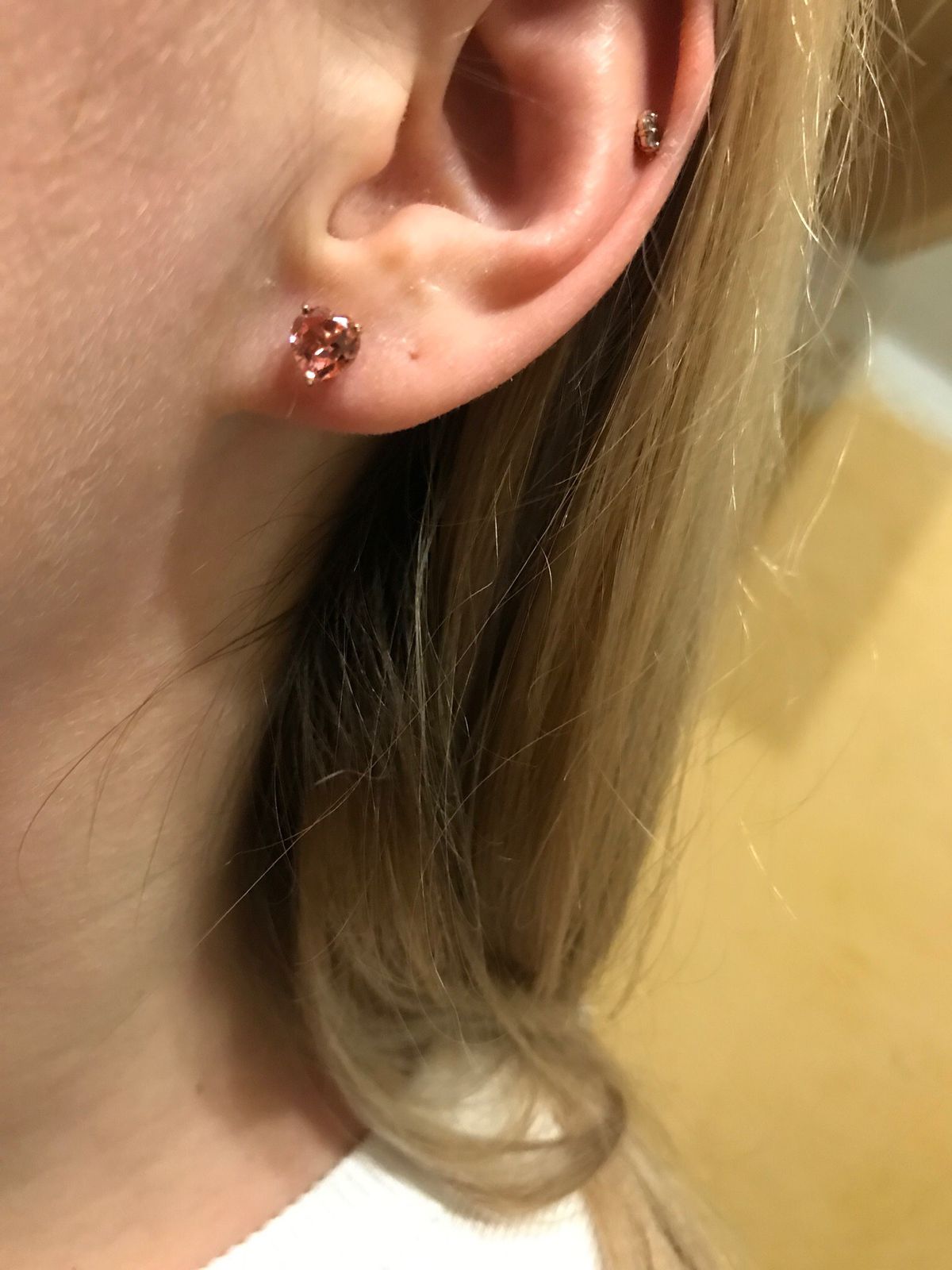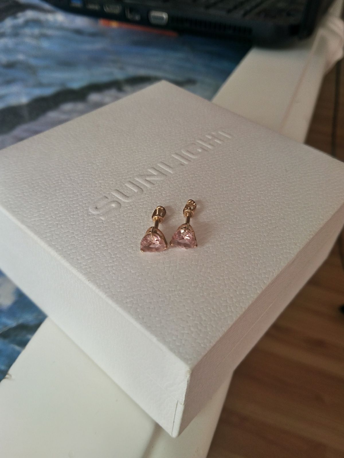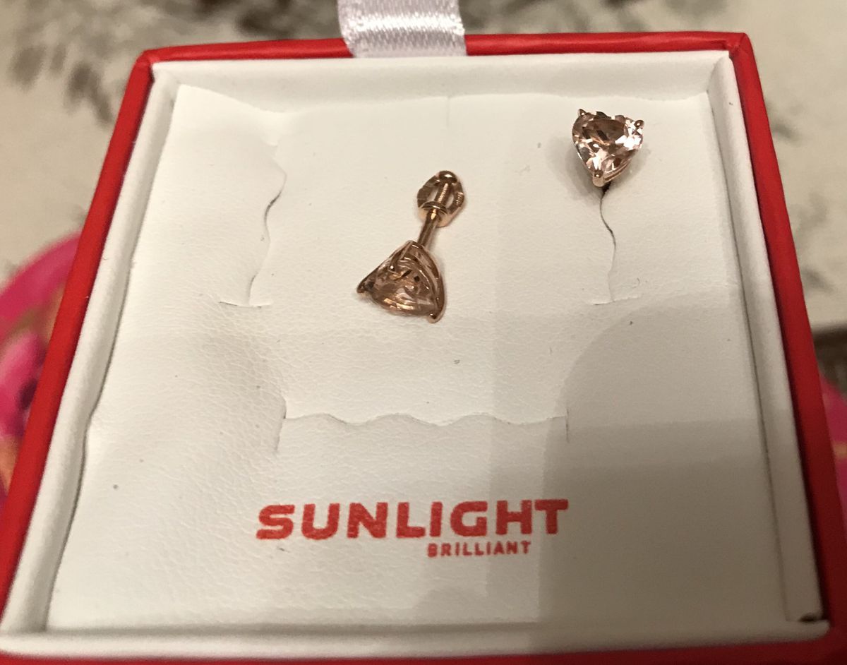 Красивые, милые гвоздики, с розовым морганитом. Надёжная застёжка, с резьбой. Покупала со скидкой, доставил на дом курьер.