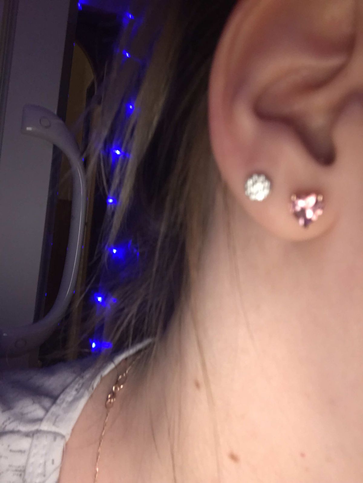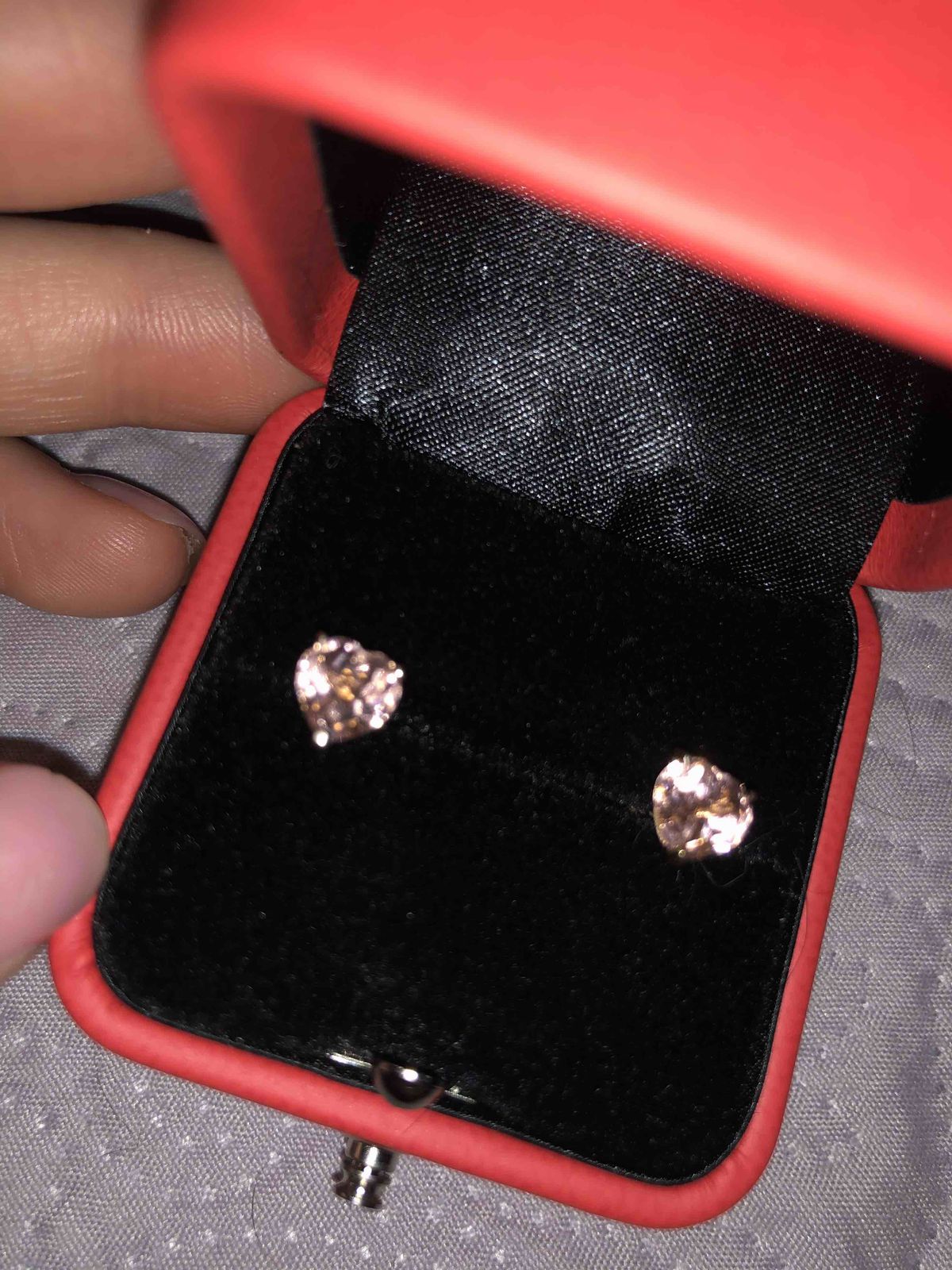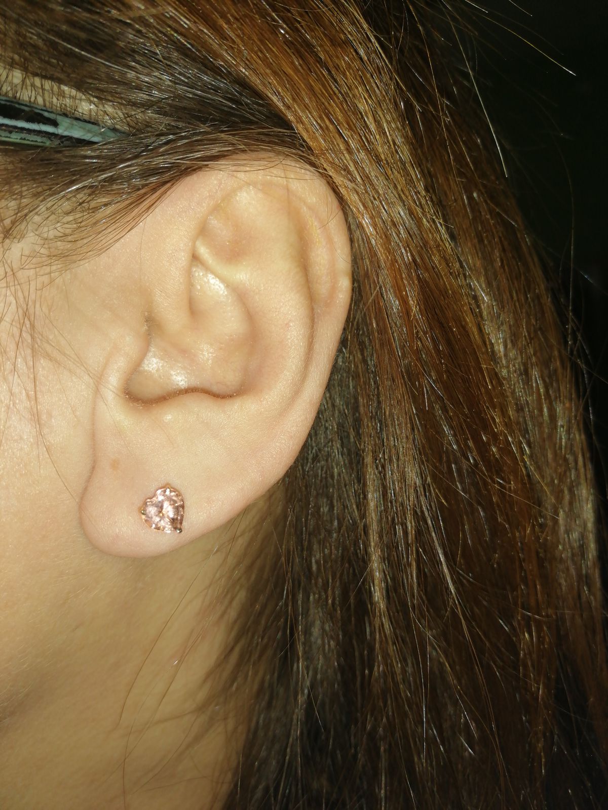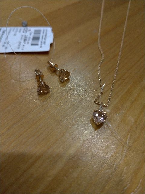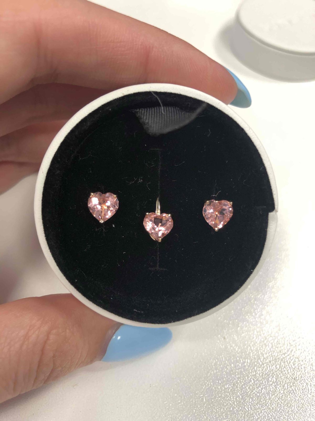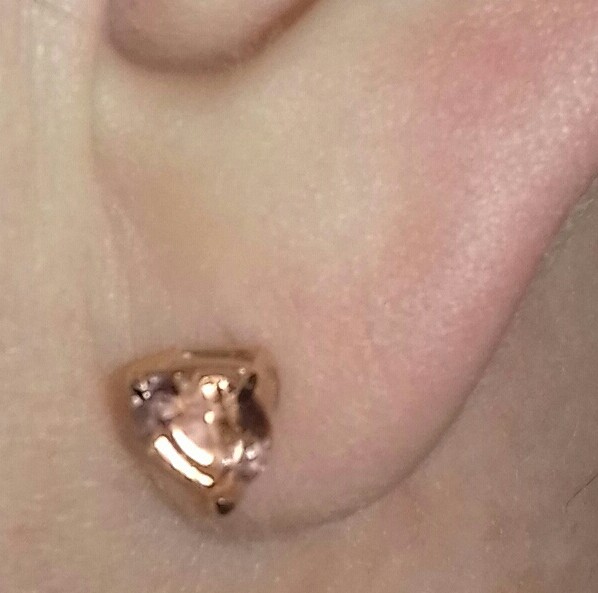 Сперва нашла в приложении кулончик, долго на него любовалась, смотрела отзывы и решила заказать комплектом с серёжками. В отличие от кулона, тут не сразу видно, что кристалл в форме сердца, но всё равно серьги чудесные.