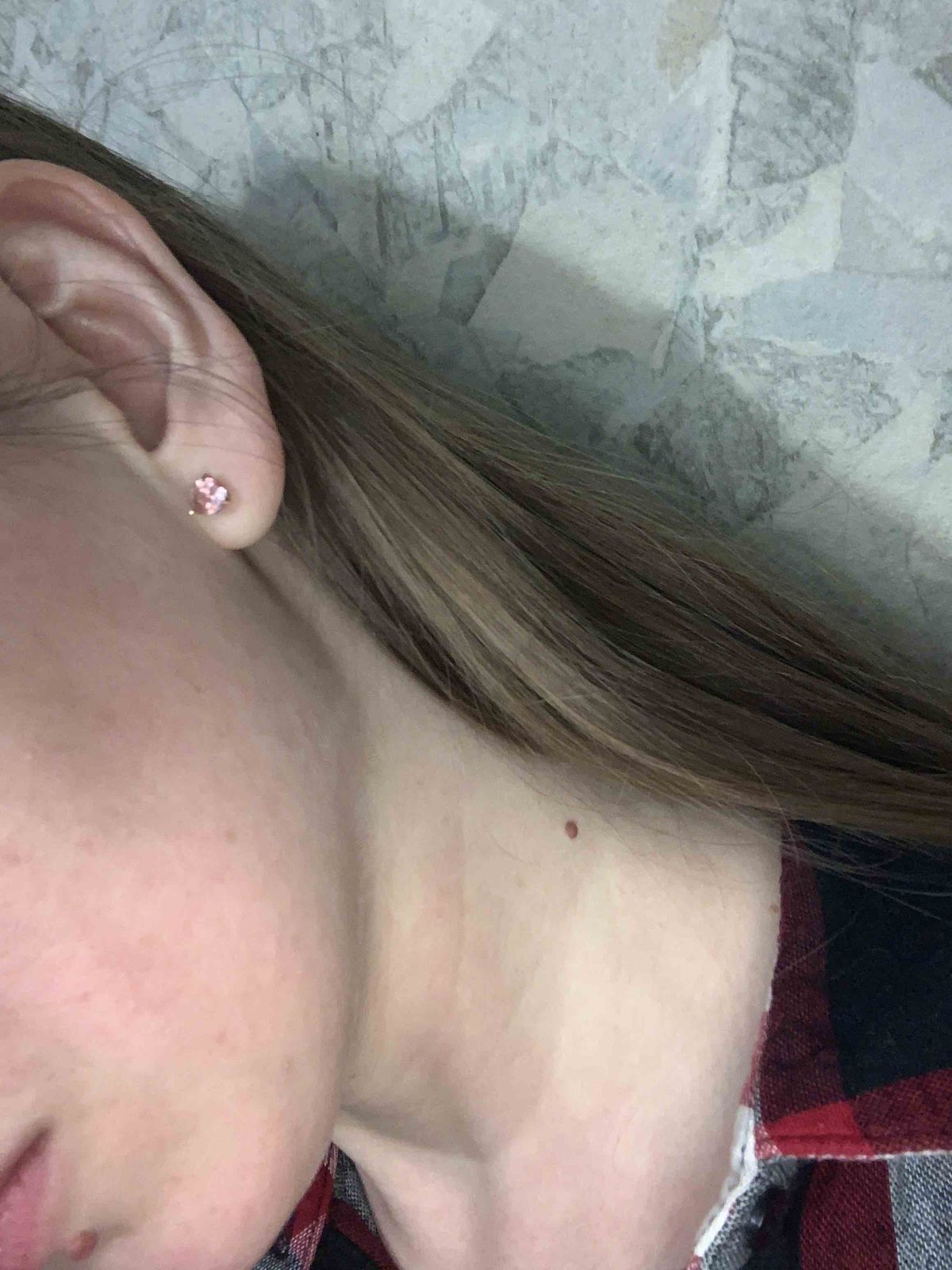 Сережки очень нежно смотрятся в ухе. Сильно не торчат, спать с ними удобно, надёжный замок