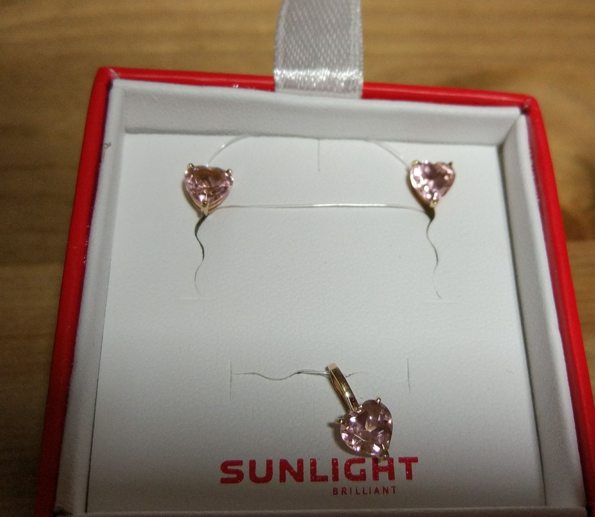 Замечательный комплект с розовыми морганитами из сережек, кольца и подвески. Удобные и красивые сережки на винтах, смотрятся на ушках супер. Очень довольна покупкой, ношу с удовольствием!!!