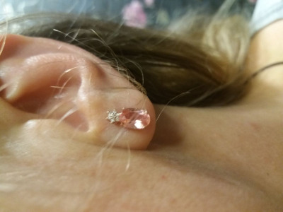 Очень понравились серьги.Камень нежного цвета,блестит,крепкий замочек винтообразный.На ночь можно не снимать,так как нет дискомфорта.