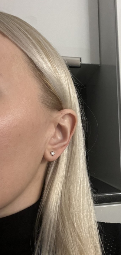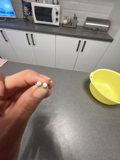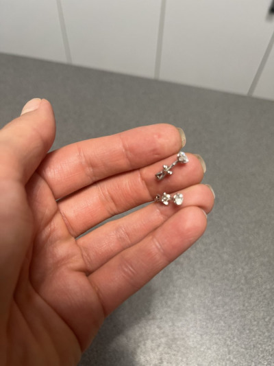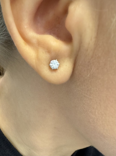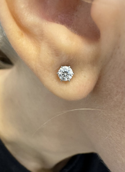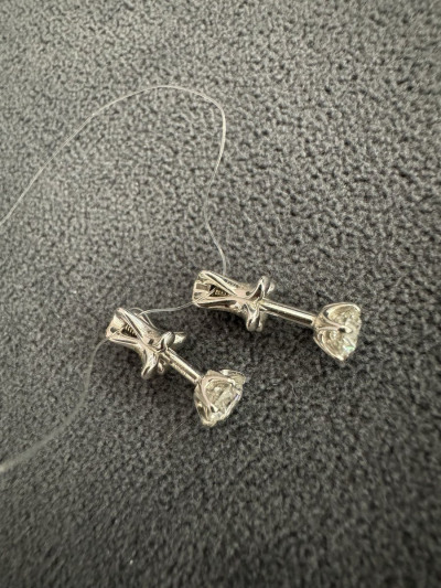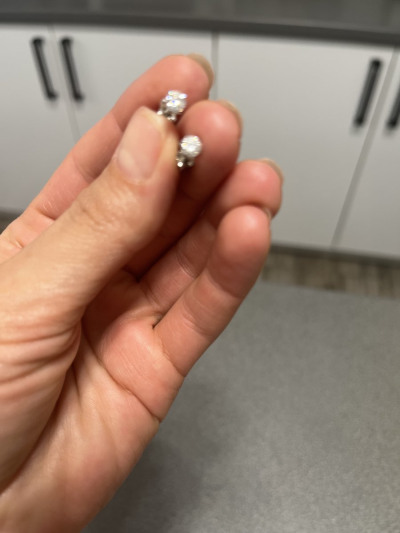 Очень красивые серьги с чистыми бриллиантами! Застёжка винтовая, крепкая. Камушек ровненький Беленький. Отлично смотрится на мочки средней. Очень качественные и удобные окрас