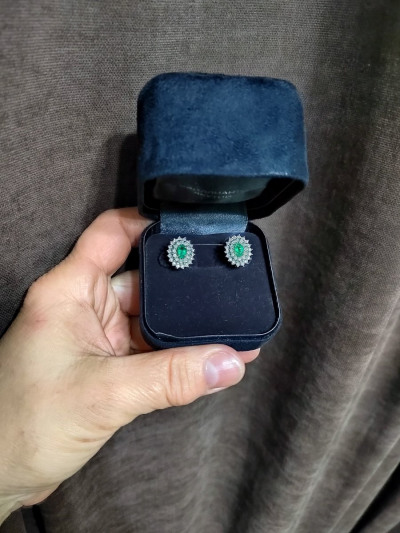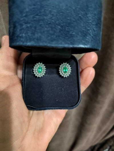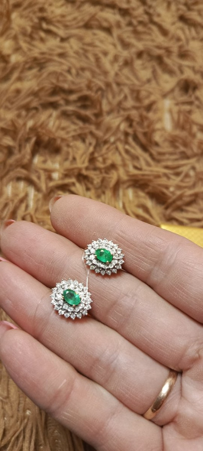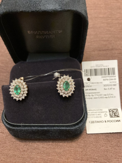 2 изумрудами природными, 0.75 карат, цвет 3, чистота 3, тип огранки Б;