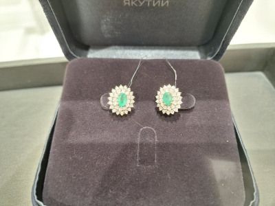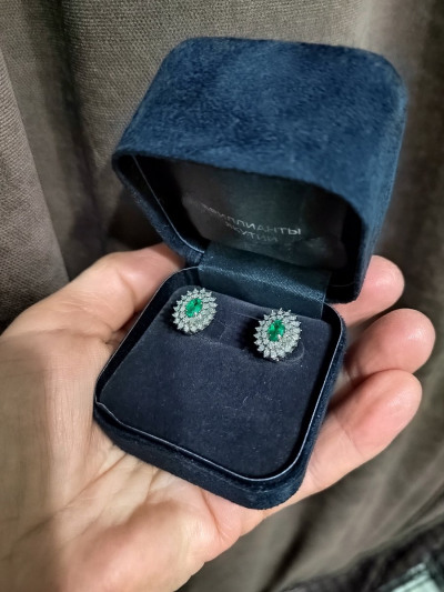 Классические серьги с изумрудами и бриллиантами. Нежные и сверкающие.