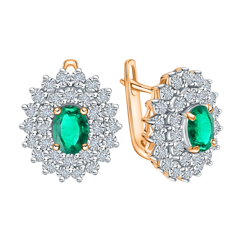 Золотые серьги с бриллиантами природными и изумрудами природными