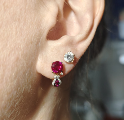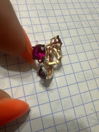 Любимые серьги , бриллианты блестят , рубин радует глаз 🩷