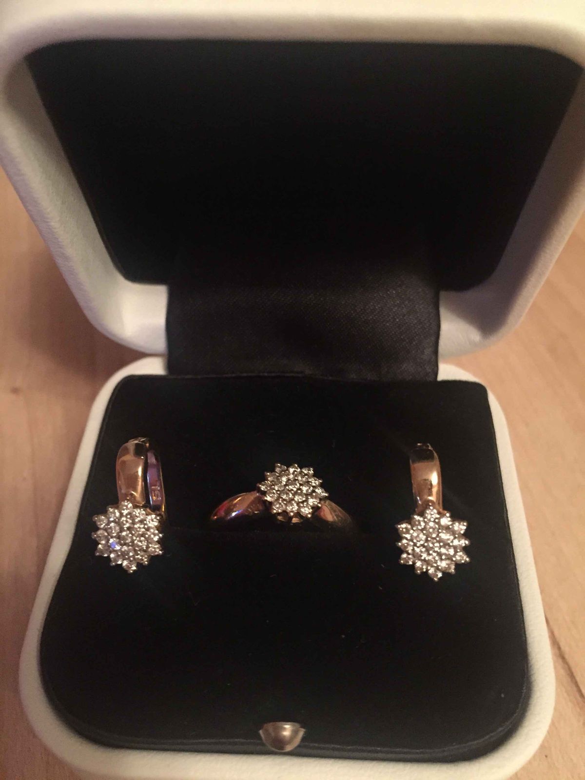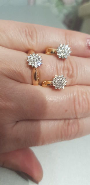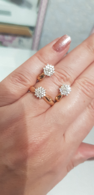 Купила сначала кольцо и сразу стала мечтать о серёжках) Набор получился - просто сказка!!! Бриллианты на солнышке переливаются невероятно!!! Покупкой очень довольна, да и цена со скидкой очень порадовала!!!