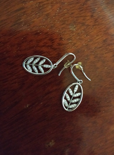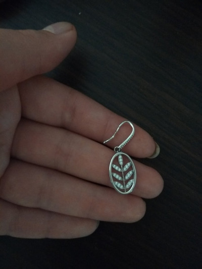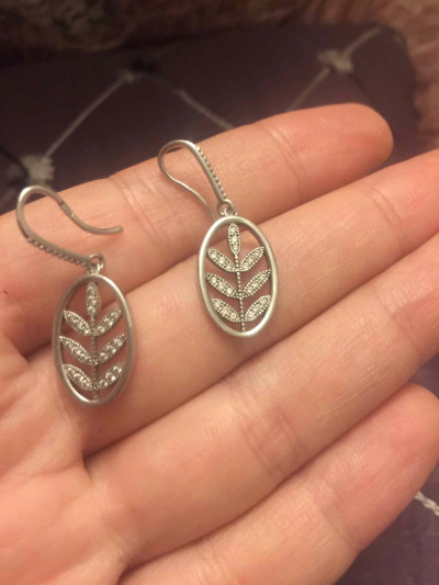 Красивые, оригинальные серьги -листочки с фианитами. На ушке смотрятся аккуратно. Рекомендую к покупке.