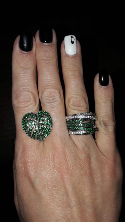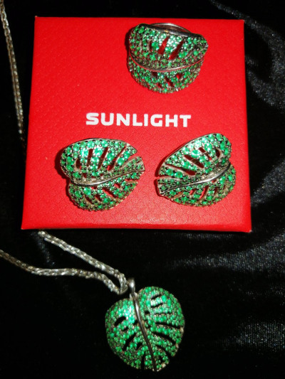 Очень красивые серьги, а в комплекте с кольцом получился роскошный гарнитур. не на повседневку конечно, на выход. цвет насыщенный зеленый, размер средний, не мелкие, блестят
