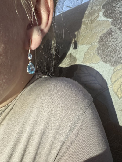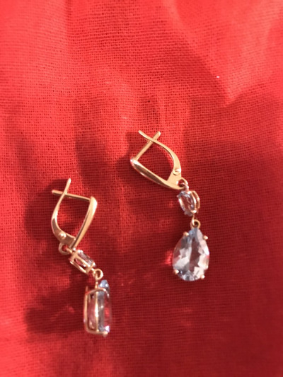 Серьги с камнями прозрачно - голубого цвета .Очень красивые ,одни из лучших в моей коллекции.Благодарю ювелира за красивое украшение