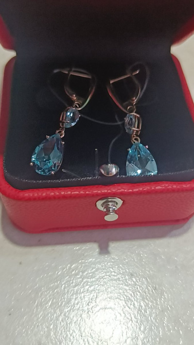 В редких случаях характеристики украшения или упаковка могут иметь отличия от представленных на фото или в описании.Серьги с 2 топазами скай природными, 6.6 карат;