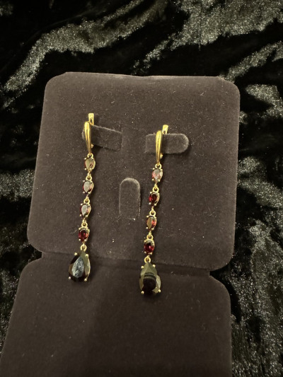 В редких случаях характеристики украшения или упаковка могут иметь отличия от представленных на фото или в описании.Серьги с 8 гранатами, тип огранки Б;
