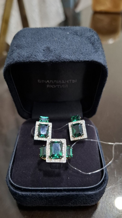 Золотые серьги с бриллиантами природными и изумрудами выращенными