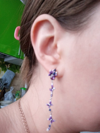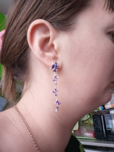 Длинные, блестят на солнце. Фото и видео не передает этот блеск. Смотрятся необычно. У меня есть кольцо под такие серьги. Думаю, такой вид украшения должен быть у каждой для разнообразия.