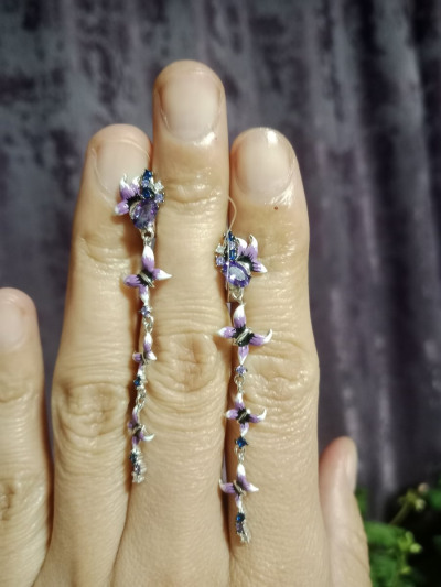 Серебряные серьги с эмалью, фианитами и шпинелями природными