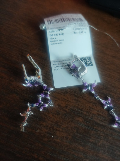 Серьги очень красивые, мне понравились смотрятся хорошо, заказывала вместе с кольцом, но кольцо не подошло по размеру. Девушка-консультант помогла сделать возврат и подобрать нужный размер Снимаю звезду за не корректное описание - на сайте указано со шпинелью, а по факту на бирке шпинель отсутствует Забрала т.к. очень понравился дизайн