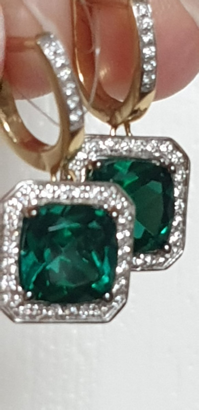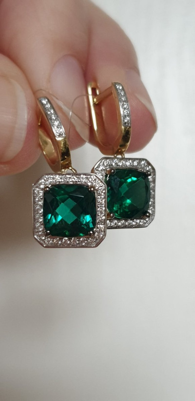 Золотые серьги с бриллиантами природными и изумрудами природными
