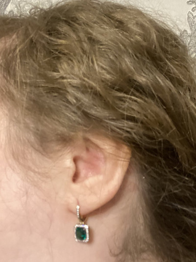 Серьги красивые. Всё при них. И блеск и цвет яркий. Лёгкие. На маленькую мочку.