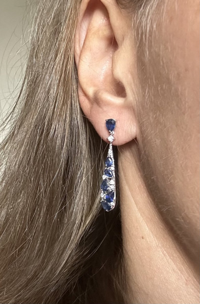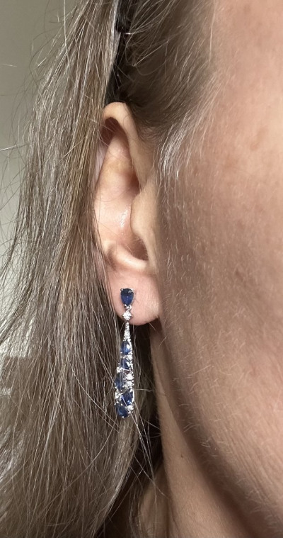 Серьги с 12 сапфирами, 3.14 карат, цвет 3, чистота 3, тип огранки Б;