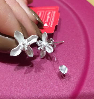 Очекь красывые серьги. Напоминают цветок сирени. Покупала к колечку, отличный летний комплект получился.