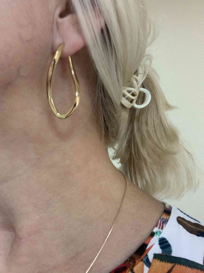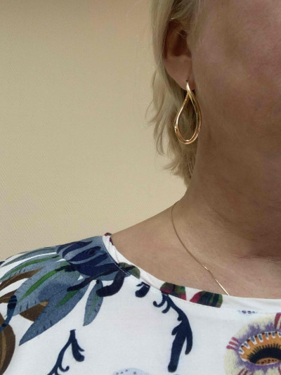 Выбирала через интернет, вживую оправдали ожидания. Серьги не маоенькие, достаьочно легкие для таких размеров. Застежка на удивление тугая и на первых порах даже надежная. Но все равно, надо следить за процессом застегивания. Красиво смотрится в мочке застежка, не вытягивает ухо сильно, что важнр! Серьги нарядные, и на работу тоже подойдут! Рекомендую- модно и стильно! Очень нравится золото италии!
