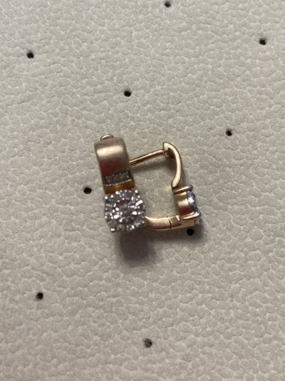 Серьги с 2 бриллиантами природными, 0.03 карат, огранка круг 57 граней, цвет 4, чистота 6, тип огранки А;