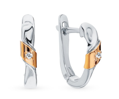 Серебряные серьги с бриллиантами природными и золотой вставкой