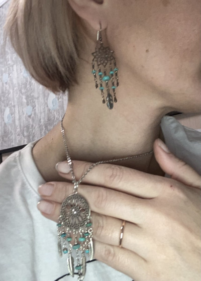Очень изящная и гармоничная вещь. Комплект из серëжек и подвески смотрится отлично. Лёгкие, подвижные, хорошо выдержана симметрия, качественный материал. После чистки всегда возвращается в первоначальный вид. Привлекает внимание и комплементы.