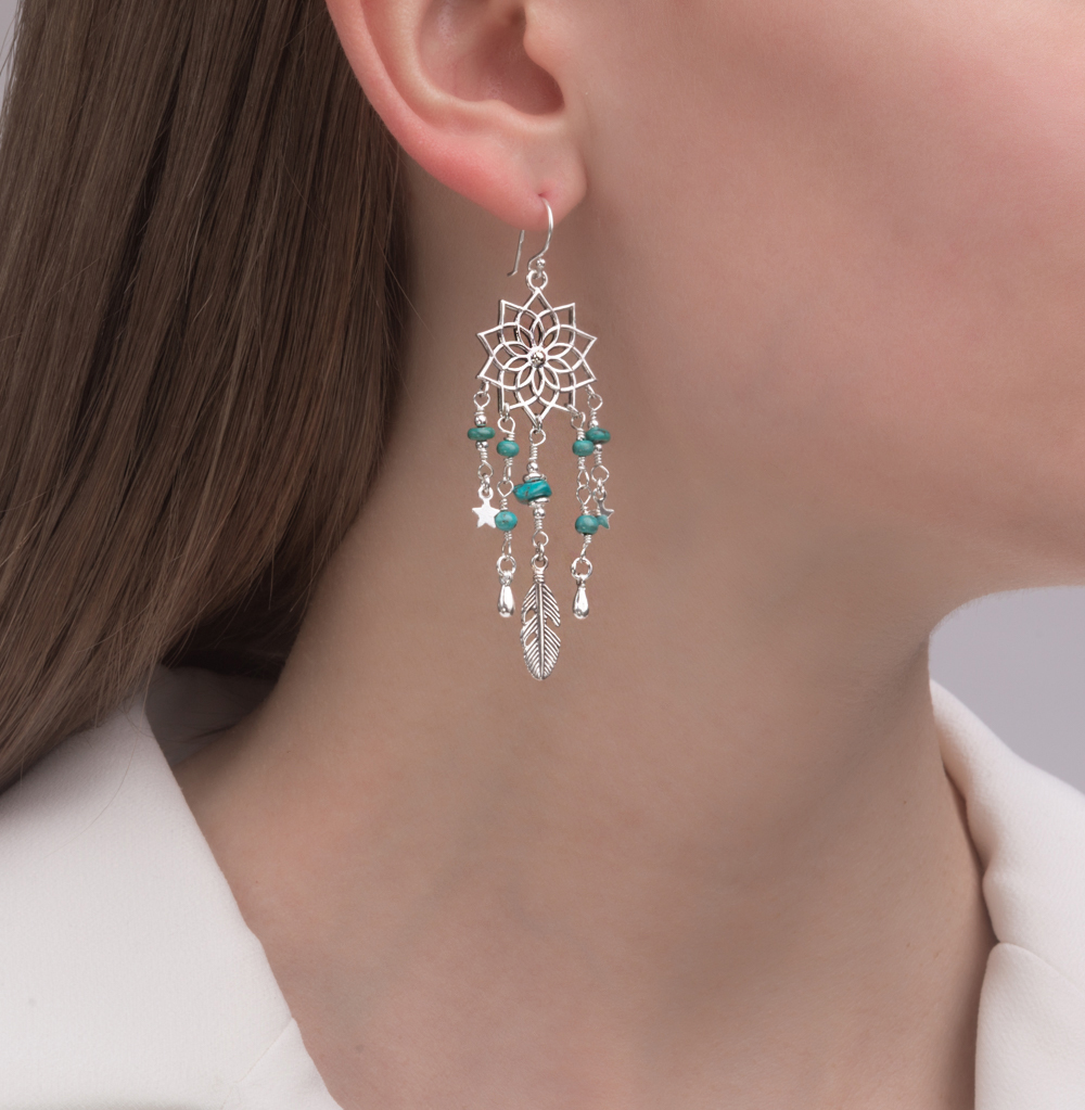 Серебрянные сережки с бирюзой создают нежный образ.Покупкой довольны