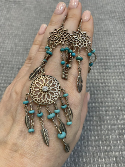 Чудо серьги с бирюзой, под старину, 19 век. Обращают на себя внимание. Прикупила и бусы из бирюзы в Санлайте. Комплект очарователен. А бирюза освежает. Советую.