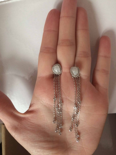 Выполнены качественно, цепочки с фианитами съемные. Сами серьги очень нежные, идеально подойдут доля подарка.