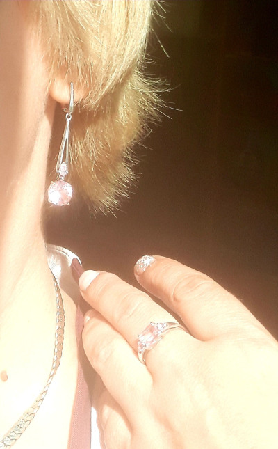 Решила побаловать себя перед отпуском-присмотрела в магазине очаровательные, длинные серьги с розовыми фианитами. Блеск ВОСХИТИТЕЛЬНЫЙ!!! Под лучами переливаются и сверкают! Очень приятная застежка на ушко средней толщины. На ушах вес не ощущается. Прикупила к ним и колечко в том же стиле-очень довольна!