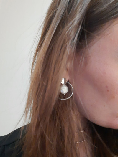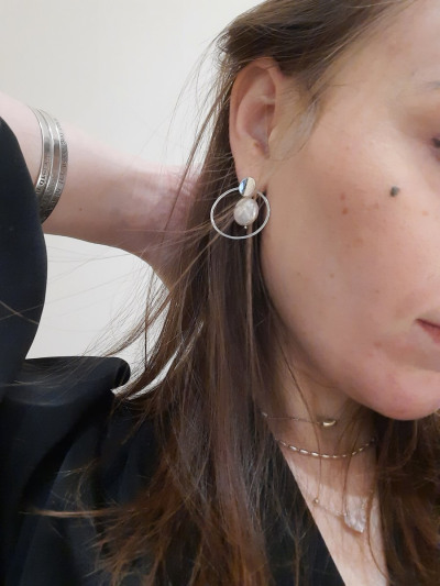 Красивые, современные и стильные серьги на каждый день. Сочетаю с романтичными платьями, джинсами и пиджаками. Барочный жемчуг очень нежный, несмотря на крупный размер. Покупкой довольна.