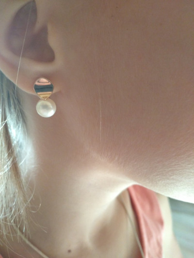 Миниатюрные о очень недорогие золотые серьги с лаконичными жемчужинами. Прекрасно сидят и смотрятся на ушке!