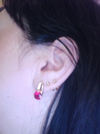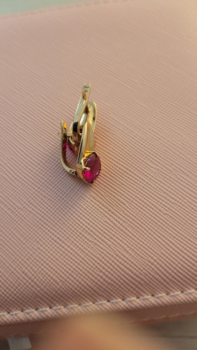 Золотые серьги с рубином синтетическим смотрятся на ушке потрясающе!!!
