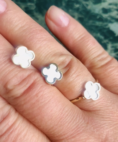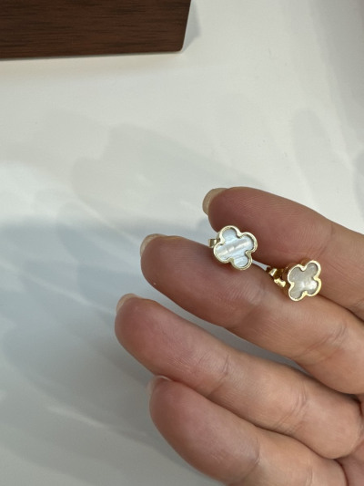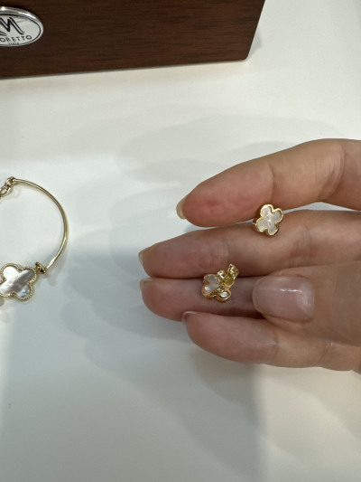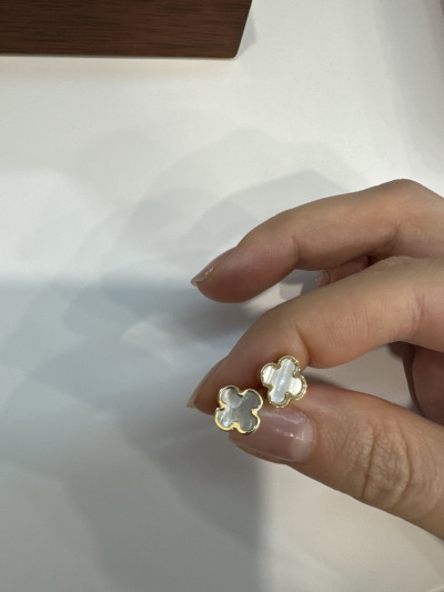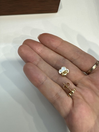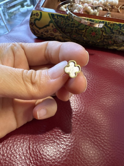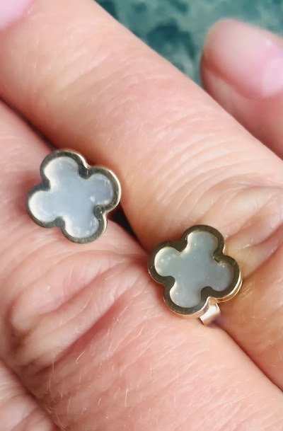 Отличное сочетание , лимонного золота,с перламутром . Клевер на удачу и просто красивые сережки , на каждый день , удобные застежки , на любые мочки ушей .