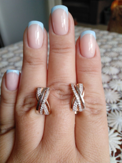 Сначала купила кольцо, решила купить серьги чтобы получился комлект, эти серьги идеально подошли к моему колечку, получился замечательный набор. Серьги не большие и не маленькие самое то, идеально сели на ухо. Я очень довольна