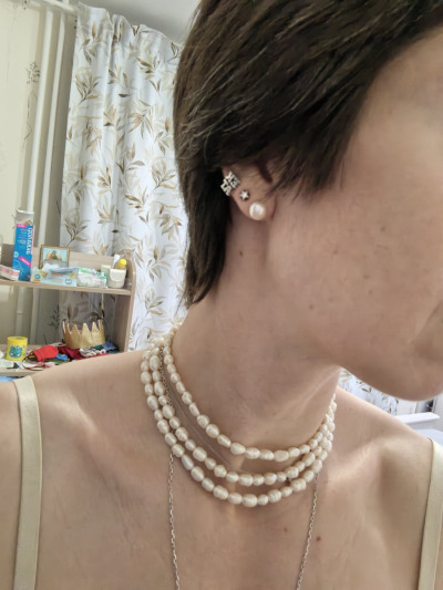 Милые жемчужинки среднего калибра, плотно на мочке, очень понравились! Рекомендую!
