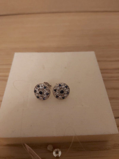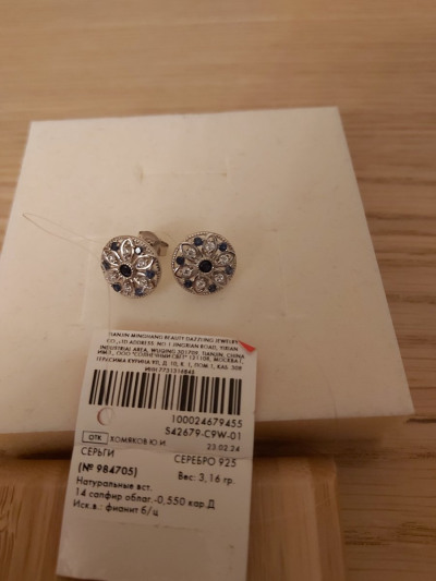 Серебряные серьги с фианитами и сапфирами природными