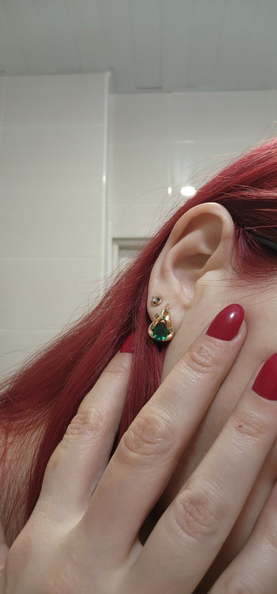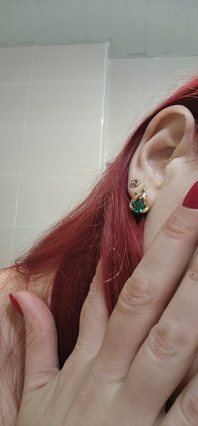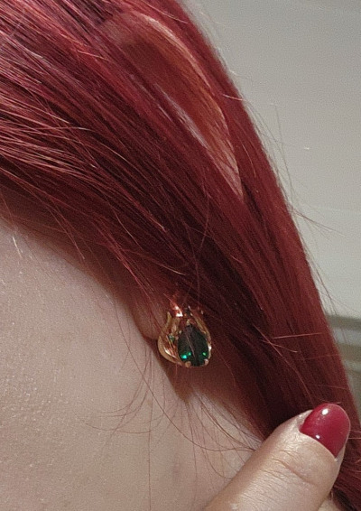 Изумруды с красными волосами - огонь. О, да у серёжек и форма - огонь! 😉 Неимоверно эффектные, а, главное, нет пошлых бриллиантов/фианитов