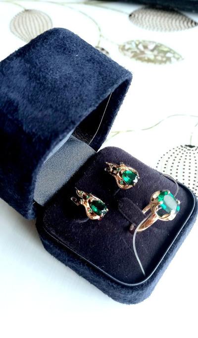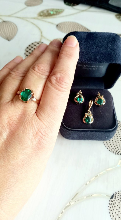 Серьги в виде языков изумрудного пламени были куплены в день рождения, камень яркий, застежка надежная, жаль, что купила до акции. С подвеской и кольцом собрался гарнитур украшений с изумрудами, которых у меня раньше никогда не было.