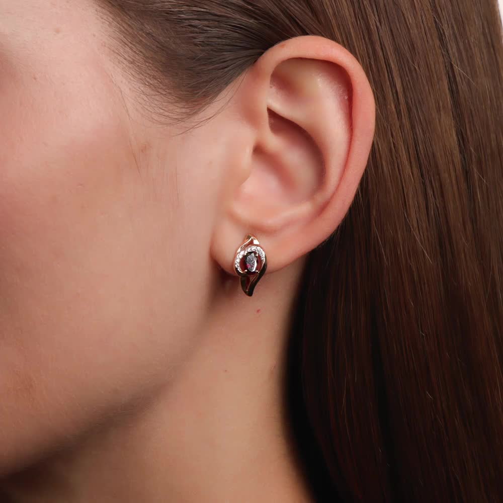 Золотые серьги с фианитами и гранатами природными