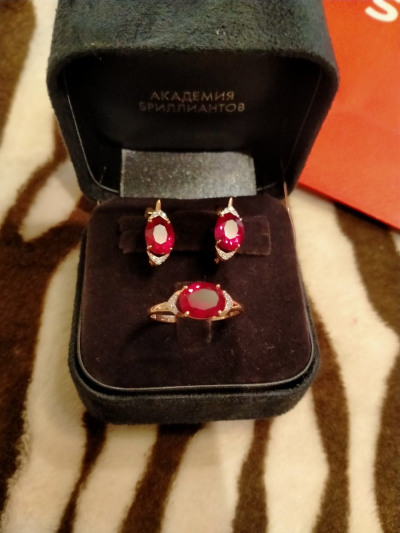 Давно мечтала купить серьги с достаточно крупными рубинами. Наконец исполнила свое желание. Фото не передаёт всю красоту и сияние камней и их цветовую гамму. Приобретайте и наслаждайтесь.Комплект -супер!