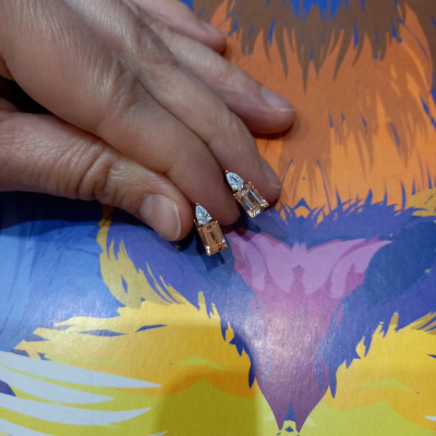Сережки очень понравились, интересный дизайн, купила в комплект к кольцу с морганитом. Обратите внимание, что серьги подойдут для маленькой мочки уха (примерно до 6 мм по высоте), мне подошли, сели вплотную по ощущениям, смотрятся аккуратно и миниатюрно!